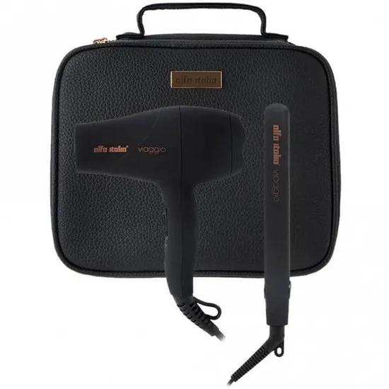 Alfa Italia Viaggio Travel Styling Kit is the ultimate companion for the modern woman on the go. This stylish collection features a mini hairdryer and hair straighteners, designed to keep your hair looking fabulous while you travel. With a chic carry case that exudes elegance, this kit is perfect for those who refuse to compromise on style, even when away from home.