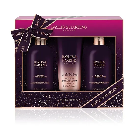 Baylis & Harding Limited Edition Wild Fig & Pomegranate Luxury Bathing Essentials Gift Set 300ml Body Wash, 300ml Shower Cream & 200ml Lotion