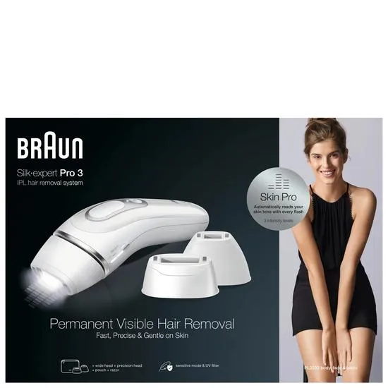 Braun IPL Silk-expert Pro 3 PL3233 Including 4 extras (Wide Head, Precision Head, Gillette Venus Divine Razor and Pouch)