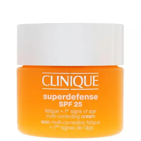 According to Clinique, Dermatologists have approved their Superdefense SPF 25 Fatigue + 1st Signs Of Age Multi-Correcting Cream Very Dry To Dry Combination Sun Protection product.