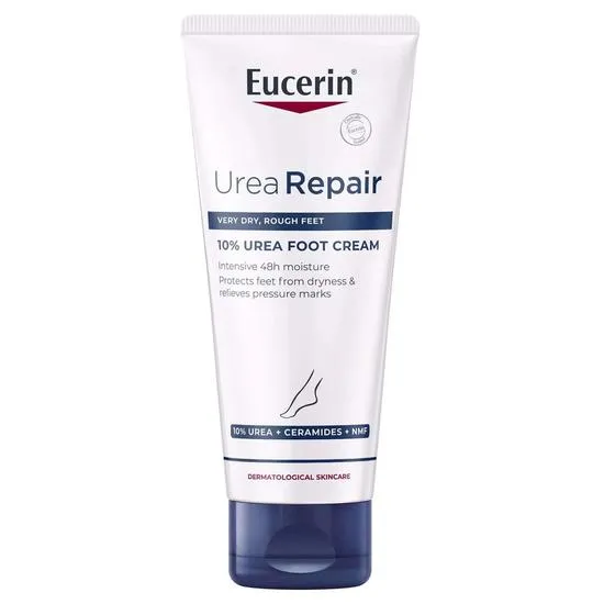 Soothe and repair dry, cracked feet with Eucerin UreaRepair Plus 10% Urea Foot Cream. This cream has been especially formulated for the thicker, harder skin on our feet, which is more prone to calluses and pressure/friction marks from shoes.