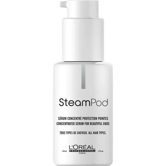 Protect your hair from heat and prepare it for styling with L'Oréal Professionnel SteamPod Protective Smoothing Serum. This serum works well with the Loreal SteamPod or your styling tool of choice. Enriched with avocado and almond oil, it hydrates and repairs dry, brittle hair.