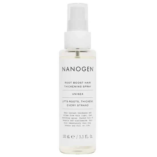 Nanogen Thickening Styling Root Boost Hair Thickening Spray is the perfect solution for anyone looking to add volume and body to flat, lifeless hair. This easy-to-use spray works like a salon blow dry in a bottle, lifting each root and thickening every strand to give your hair an instant boost. Its light, non-greasy formula ensures your hair feels natural while gaining enviable thickness and volume throughout the day.