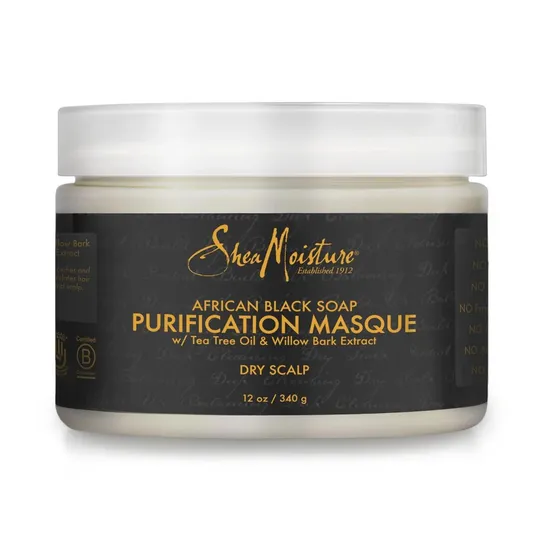 Shea Moisture African Black Soap Bamboo Charcoal Purification Masque offers a deeply nourishing treatment that helps revitalise your hair and scalp. This masque combines the purifying power of African Black Soap with Bamboo Charcoal’s ability to draw out impurities, leaving your scalp feeling fresh and balanced. It works gently to remove excess oil and buildup, promoting a clean and healthy scalp environment.