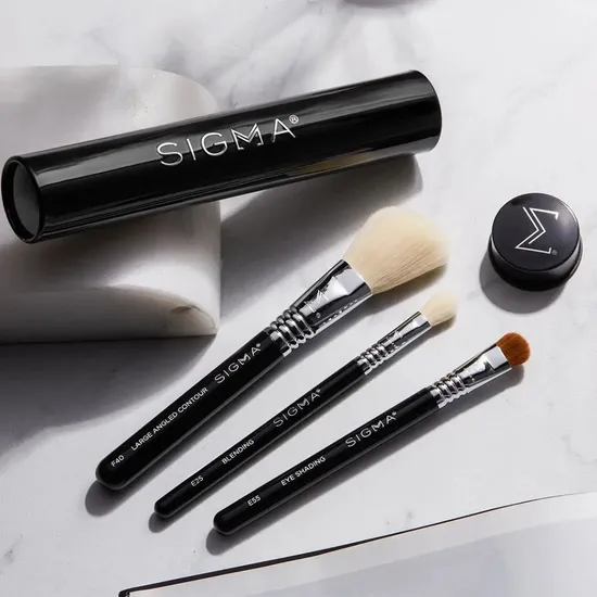 Sigma Beauty's Essential Trio Brush Set is your new best friend for effortless touch-ups and perfect makeup application on the go. This fabulous set includes three essential travel-size brushes: an angled face brush and two classic eye brushes, all neatly housed in a stylish Brush Tin, making it ideal for those who love to look their best without the fuss.