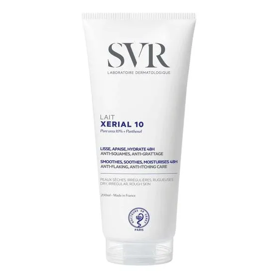 SVR XERIAL 10 Body Lotion is the ultimate solution for ashy and flaky skin, providing the nourishment your skin craves. Suitable for all ages, from toddlers to adults, this restoring lotion delivers intense hydration that lasts up to 48 hours. With its unique formulation containing 10% pure urea, this body milk offers immediate smoothing and revitalisation, transforming your skin from rough to soft with ease.